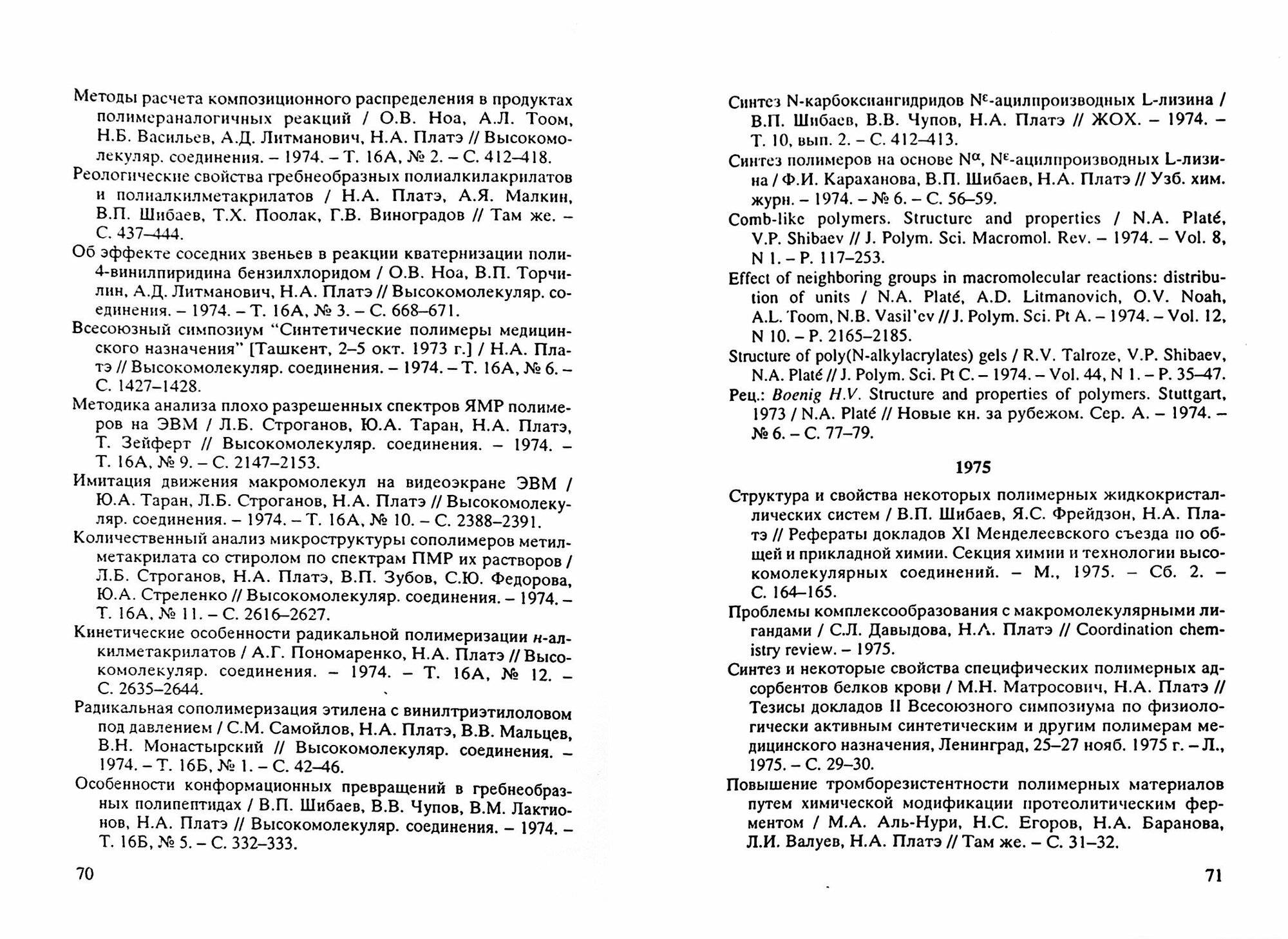 Выпуск посвящен крупнейшему представителю отечественной химической науки, автору фундаментальных трудов в области химии полимеров академику Н.А.Платэ. Содержит описание жизненного и творческого пути ученого, литературу о нем и его трудах, хронологический указатель трудов, вспомогательные указатели.