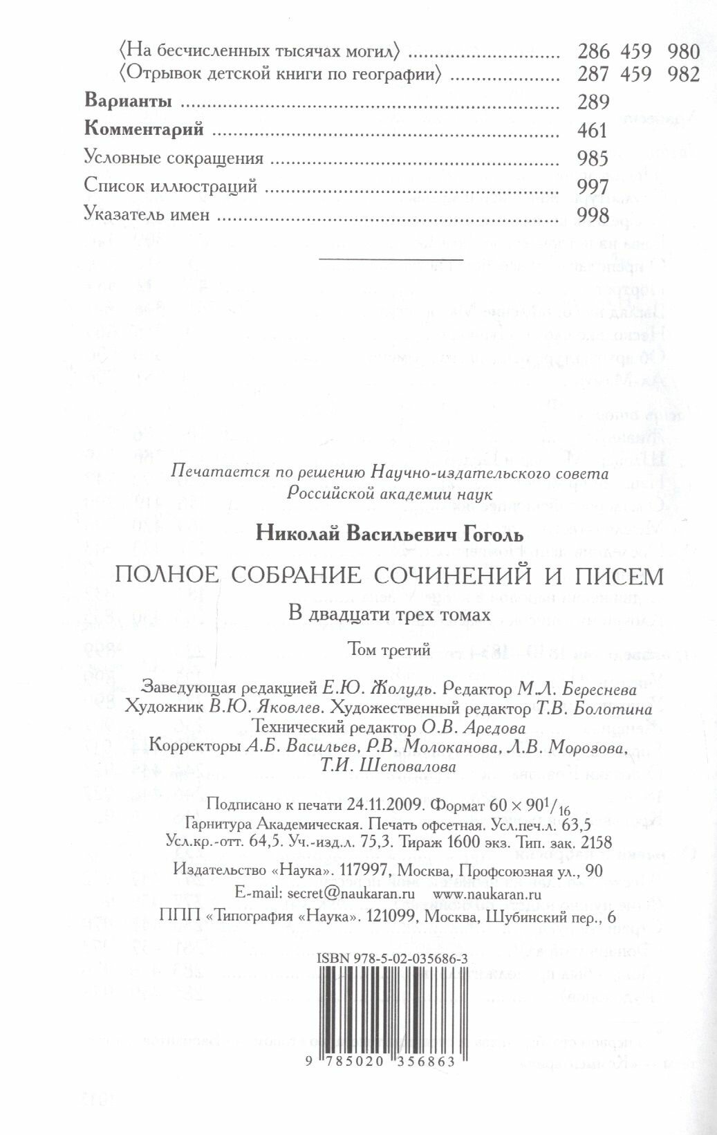 Полное собрание сочинений и писем. В 23-х томах. Том 3 (Гоголь Николай Васильевич); Наука, 2009