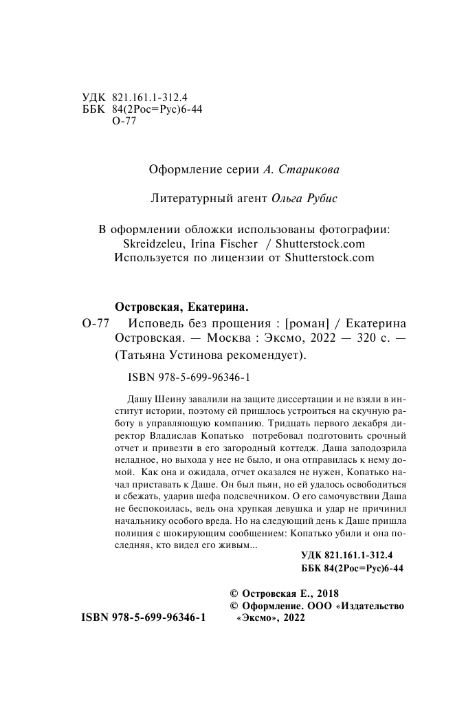 Книга: Исповедь без прощения (Екатерина Островская); Эксмо, 2017