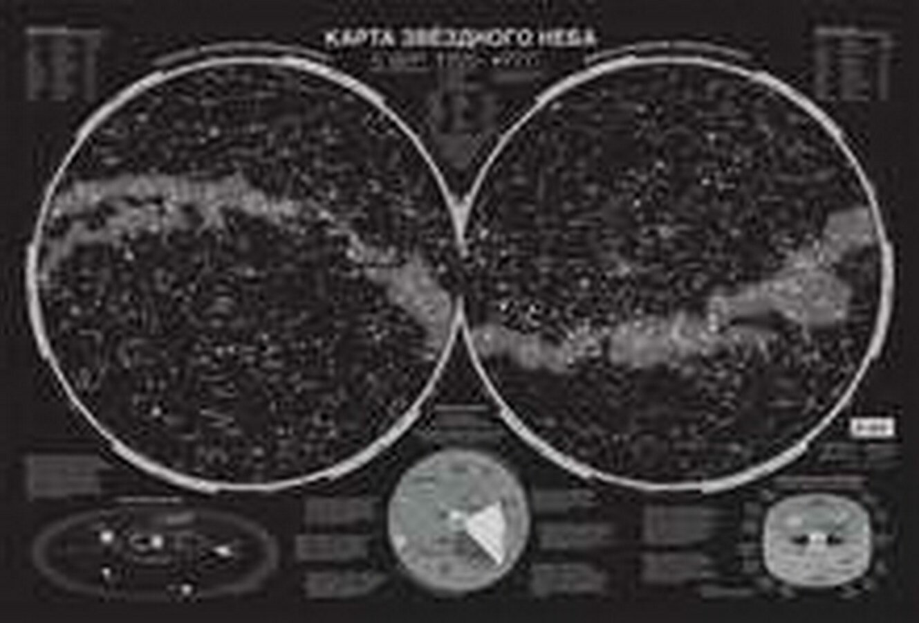 На этой необычной настенной карте размером 870х580 мм представлены северное и южное полушария небесной сферы. Так ночное небо с мерцающими на нём галактиками, туманностями и звёздными скоплениями выглядит с Северного и Южного полюсов Земли.