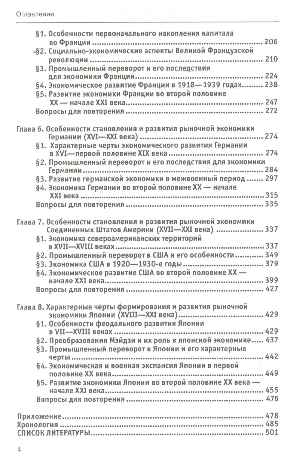 Начиная с 14 века подробным образом описано экономическое развития «Англии, Франции, Германии и США. Важное отличие этого пособия от аналогичных, к четырем традиционным государствам добавлена Япония.