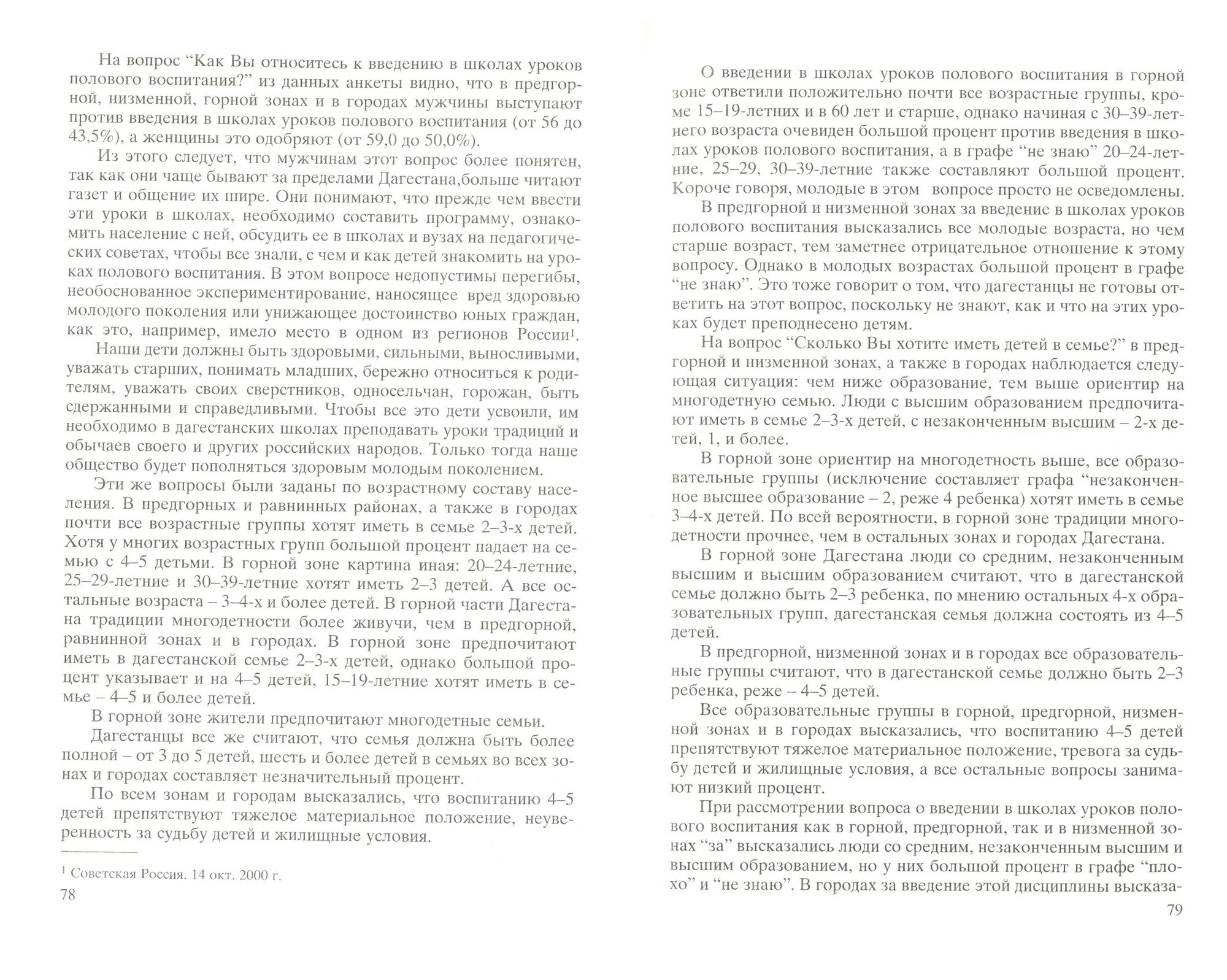 В монографии исследуются проблемы численности, размещения, воспроизводства и возрастно-полового состава населения Республики Дагестан по материалам переписей населения СССР и РФ. Дается сравнительный анализ результатов переписей. На основе проведенных автором в районах и городах республики социологических исследований рассматриваются вопросы семьи: рождаемости, смертности, полового воспитания детей. Значительное место уделено вопросам миграции населения, ее причинам и последствиям.