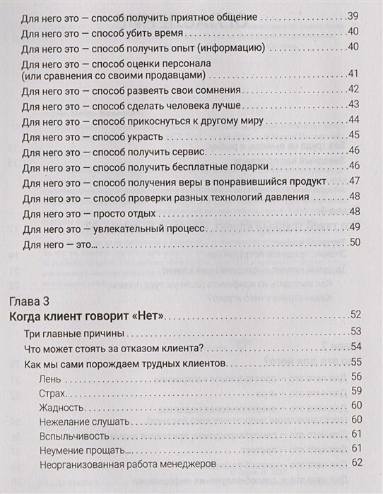 Новая книга Игоря Зорина написана для продавцов, менеджеров по продажам, руководителей торговых компаний, всех тех, кто в силу своих профессиональных прав и обязанностей напрямую контактирует с клиентами - покупателями. В книге подробно описаны и классифицированы наиболее часто встречающиеся типы трудных клиентов, а также просто и понятно изложены правила и приемы работы с ними. Книга одинаково доступна и полезна как начинающим продавцам, так и "бывалым" менеджерам.