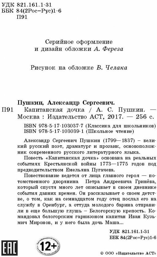Книга: Капитанская дочка (Александр Сергеевич Пушкин); АСТ, 2021