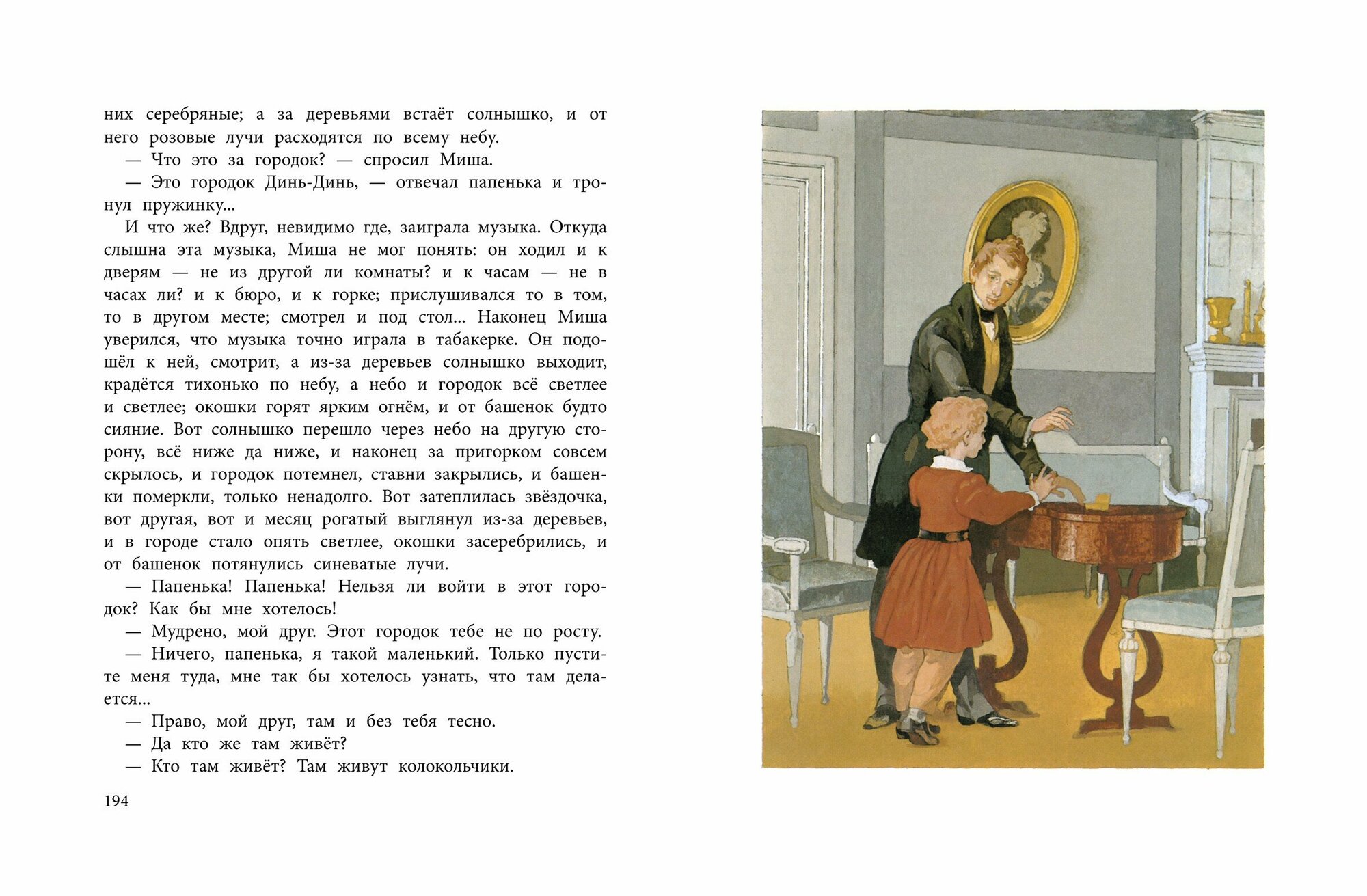 В книгу вошли избранные литературные сказки: "Сказка о царе Салтане, о сыне его славном и могучем богатыре князе Гвидоне Салтановиче и о прекрасной царевне Лебеди" и "Сказка о рыбаке и рыбке" А. С. Пушкина, "Спящая царевна" В. А. Жуковского, "Ашик-Кериб" М. Ю. Лермонтова, "Чёрная курица, или Подземные жители" Антония Погорельского, "Аленький цветочек" С. Т. Аксакова и "Городок в табакерке" В. Ф. Одоевского.
