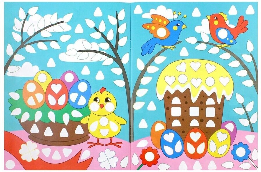 В этой книге ты найдёшь более 1000 ярких геометрических наклеек для создания мозаичных картин!