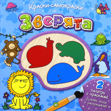 Каждый альбом новой серии "Краски-самокраски" - это и забавные картинки для раскрашивания, и две картонные палитры с красками в виде фигурок зверей. Всё, что нужно, - это взять кисточку и развести краски с помощью воды. И можно уже раскрашивать!