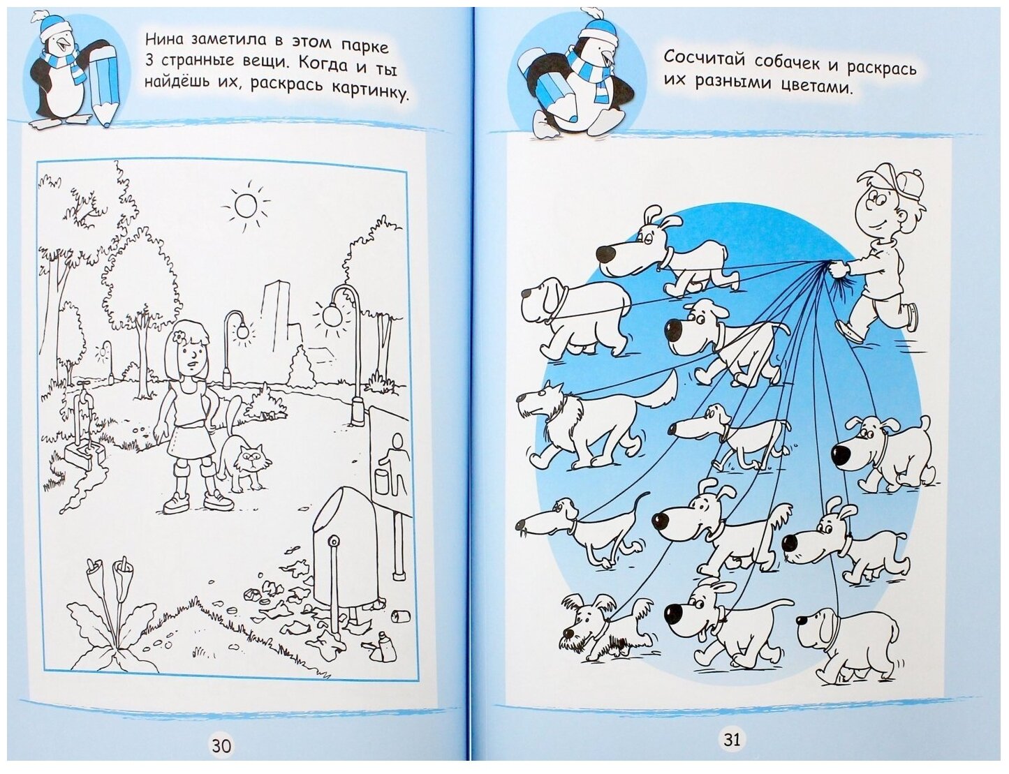 Замечательная книга с различными заданиями и головоломками. Есть и раскраски, и лабиринты, и поиск лишнего, и задания соединить по точкам картинки. Вся книга в сине-белом формате. Очень довольна покупкой. Формат книги примерно как небольшой журнал. Благодаря мягкой обложке и удобному переплету, книга удобно раскрывается и можно легко выполнять задания.