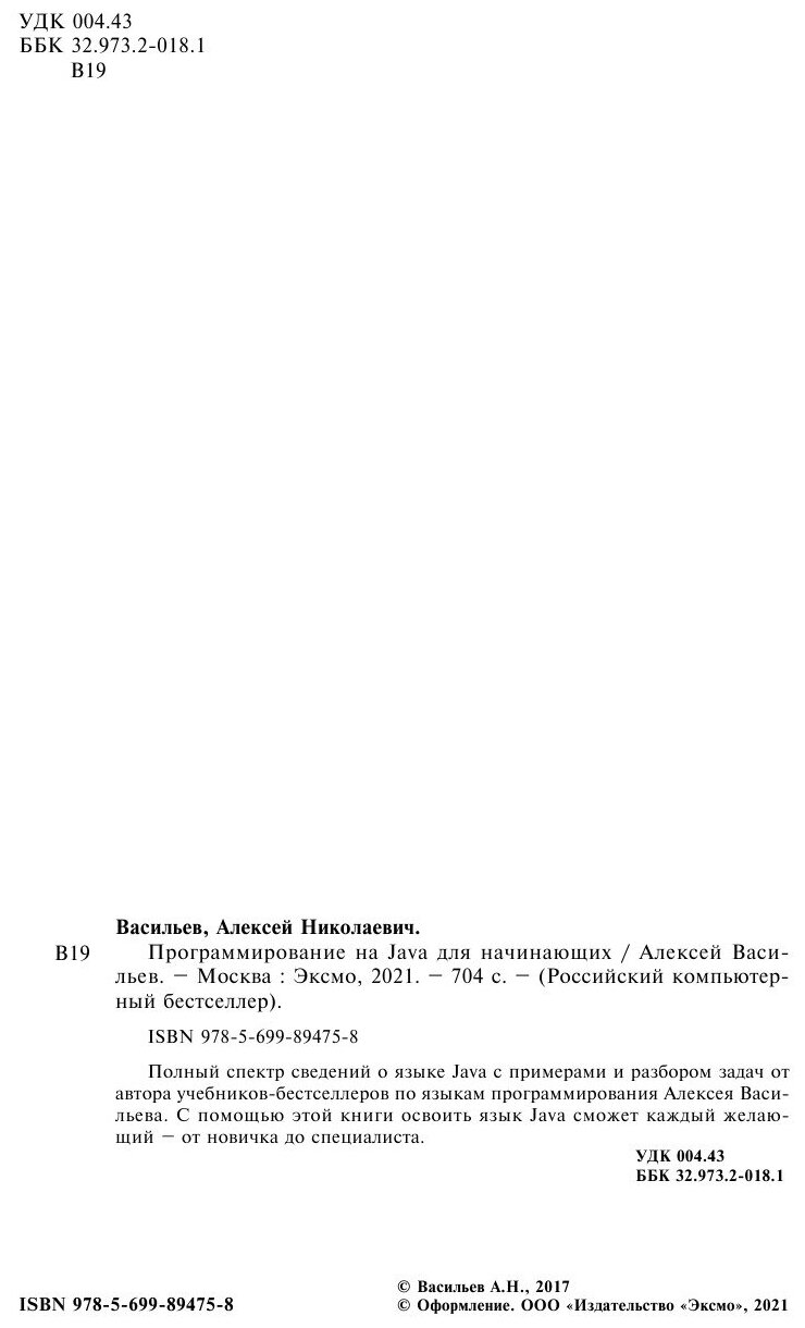 Программирование на Java для начинающих (Алексей Николаевич Васильев); Эксмо, 2024
