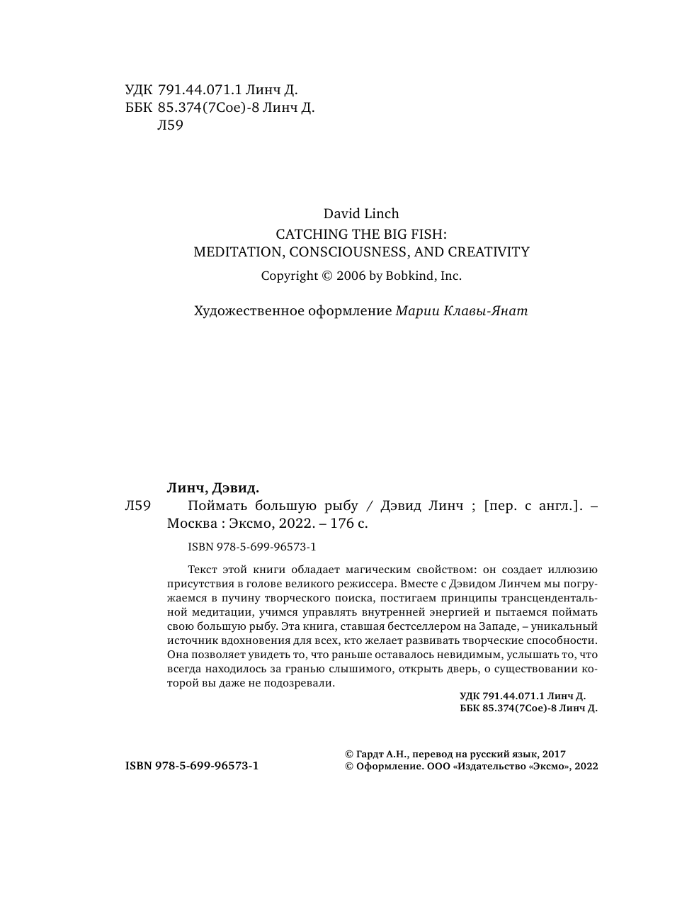 Книга: Поймать большую рыбу (Дэвид Линч); Эксмо, БОМБОРА, 2025