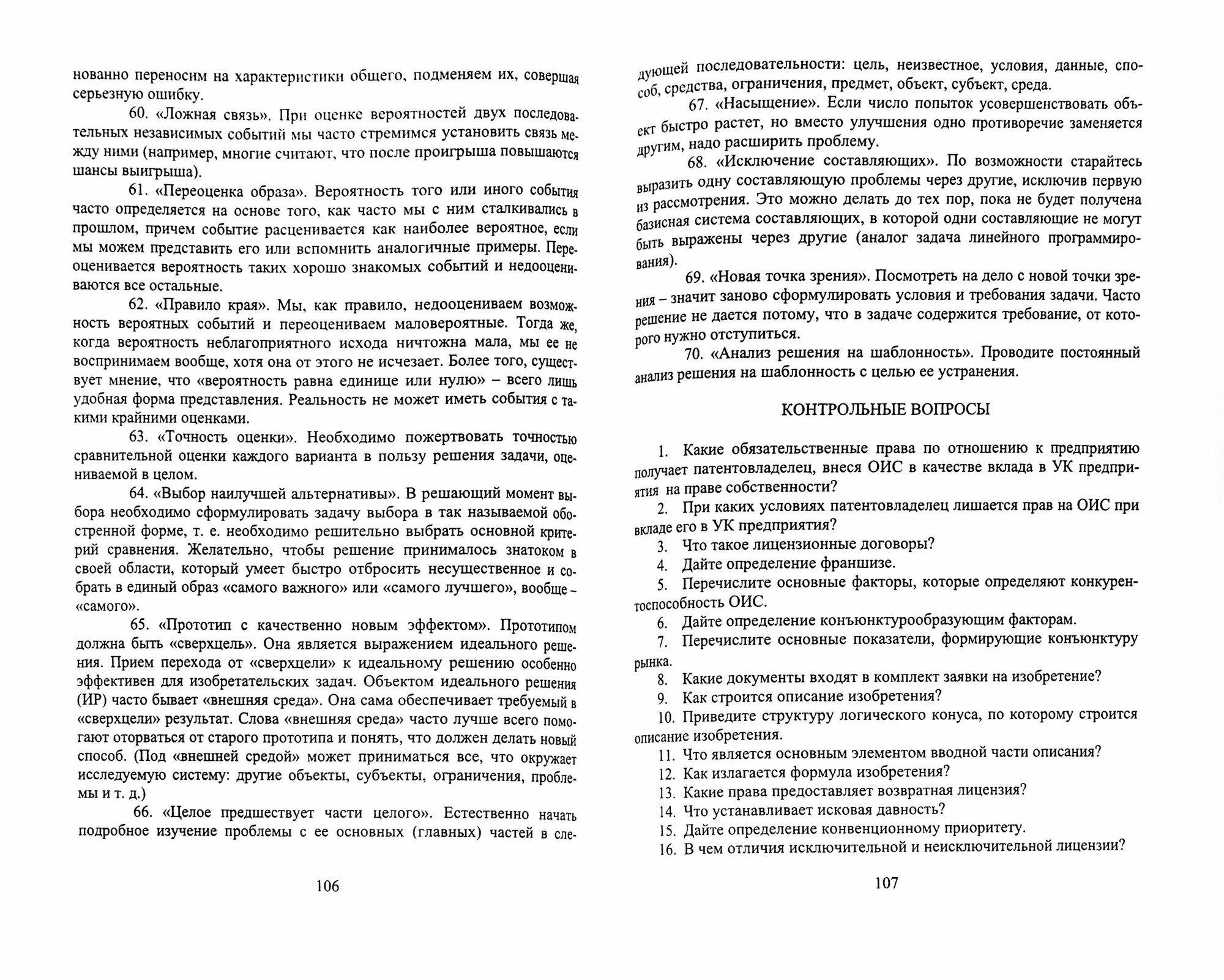 Учебное пособие посвящено рассмотрению широкого круга вопросов, связанных непосредственно с разработкой объектов интеллектуальной собственности, а также правовых форм ее защиты. Основной теоретический материал дополняют практические примеры технических решений, выполненных на уровне изобретений, и этапы их разработки.