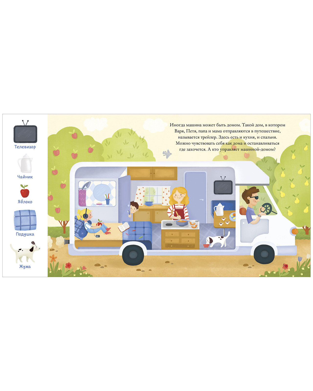 Красочные иллюстрации с крупными элементами, короткие интересные истории, предметы для поиска - все, что необходимо для развития ребенка и веселой игры!