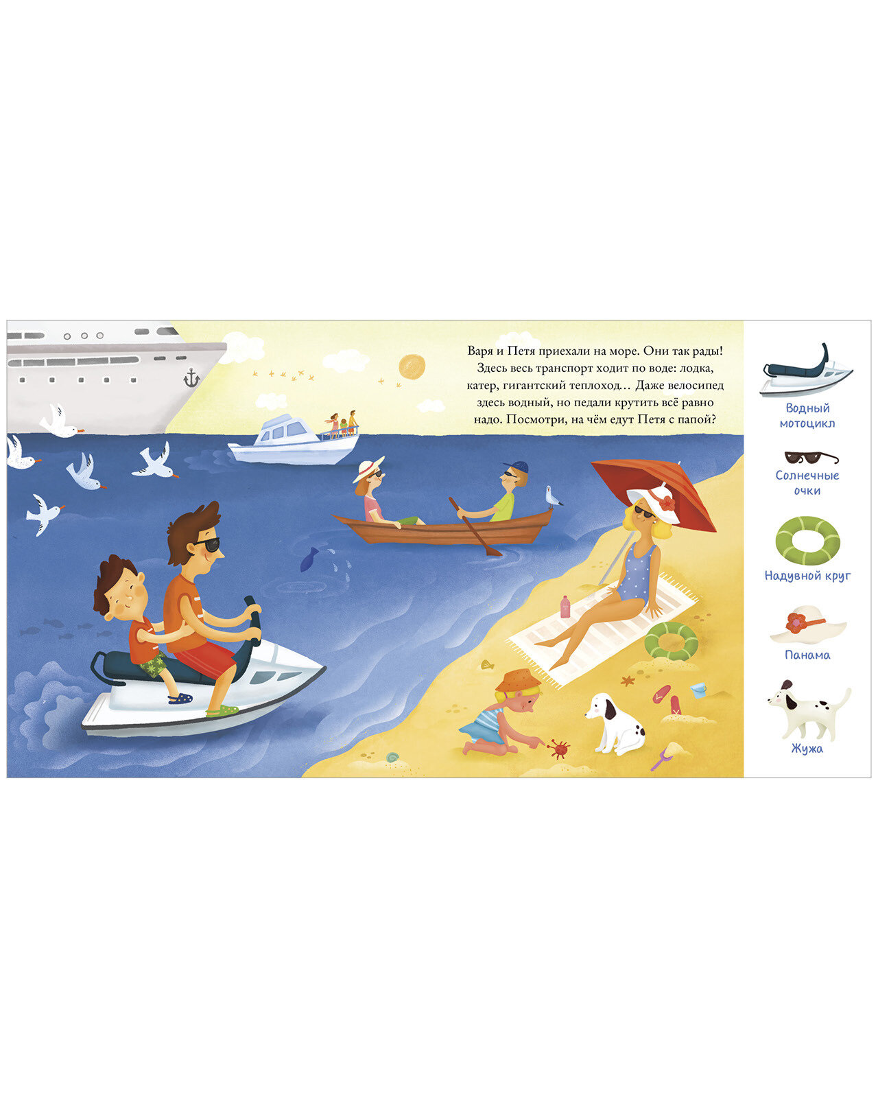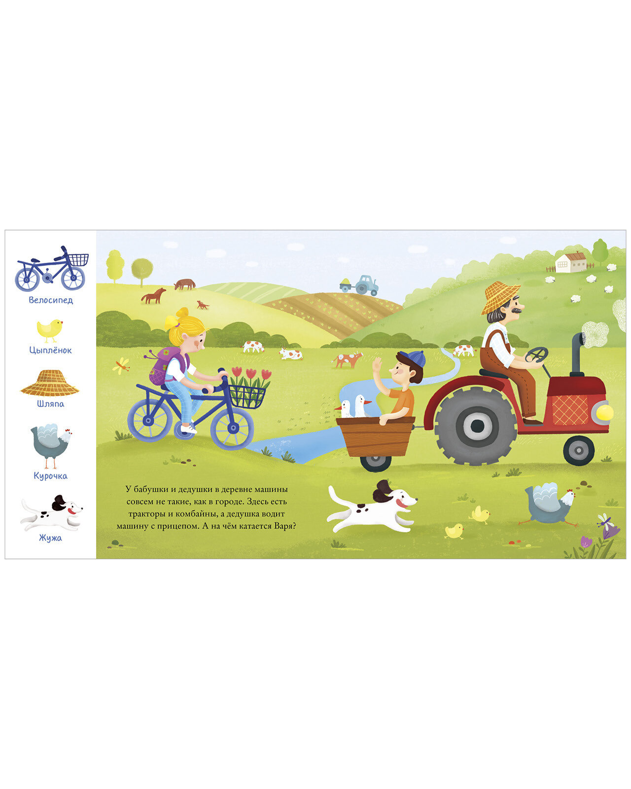 Транспорт в данной книге самый разный: поезд, автомобиль, трактор, велосипед, водный мотоцикл и так далее.