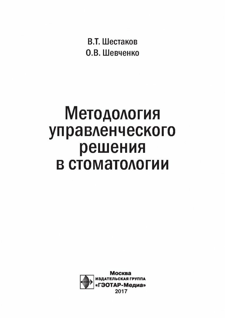 Методология управленческого решения в стоматологии (Шестаков Владимир Трофимович, Шевченко Олесь Вячеславович); ГЭОТАР-Медиа, ГЭОТАР-Медиа, 2017