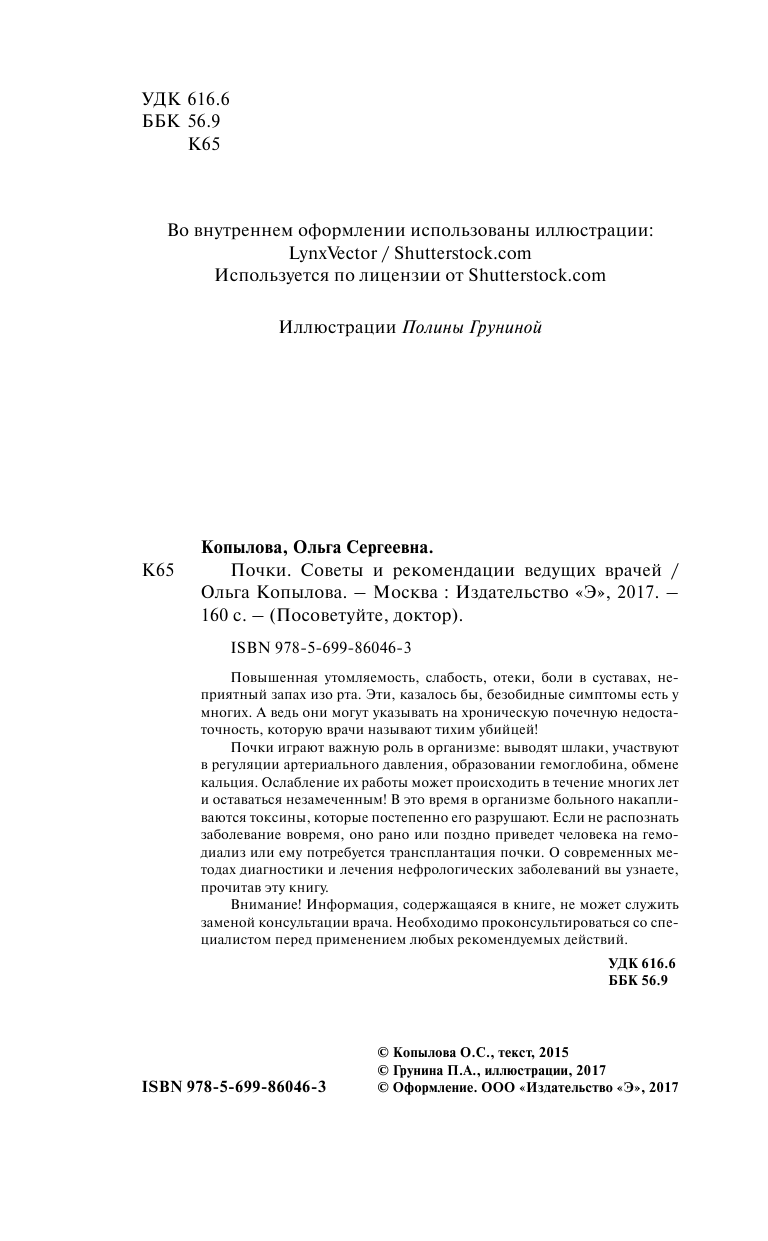 Сервис сравнения цен СкидкаГИД предлагает сравнить цены на товар «Книга: Почки. Советы и рекомендации ведущих врачей (Копылова Ольга Сергеевна); Эксмо, 2017»