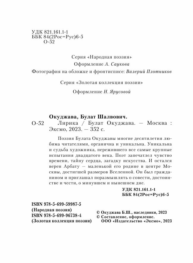 Книга: Лирика (Окуджава Булат Шалвович); ООО "Издательство "Эксмо", 2017