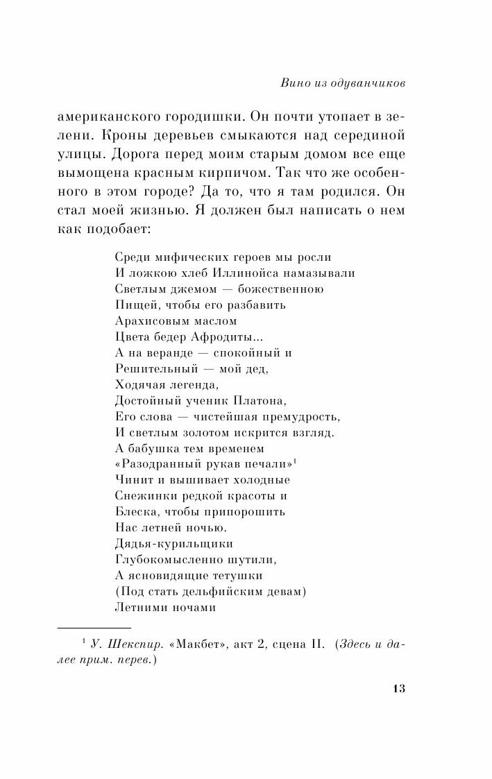 Очень понравилась книга, что стала одной из моих любимых теперь! Еще я настолько полюбила главного героя, поэтому заказала продолжение (Лето прощай и Летнее утро, летняя ночь). Но если честно Вино из одуванчиков зацепило больше.