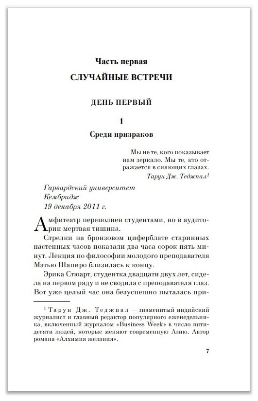 Прекрасная книга. Очень понравился роман. Жанр необычный, хотя это уже второе произведение автора, которое прочитал, сейчас третью книгу читаю и всё также интересен жанр смешения романа, детектива, мистики и чего-то там ещё=) В начале читал и думал, что уже прям разгадал концовку, но реально до последних страниц книга не отпускает и сюжет здорово закручен. Для себя лично ничего лишнего не обнаружил. Рекомендую к прочтению.