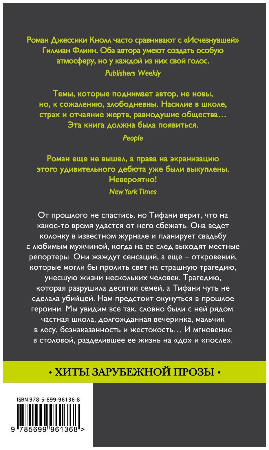 Нам предстоит окунуться в прошлое героини. Мы увидим все так, словно были с ней рядом: частная школа, долгожданная вечеринка, мальчик в лесу, безнаказанность и жестокость… И мгновение в столовой, разделившее ее жизнь на "до" и "после".