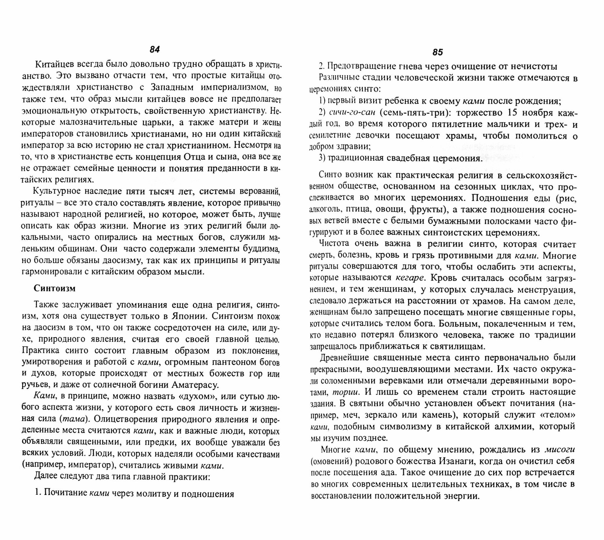 В книге содержится общая информация по всем аспектам даосизма. Подойдёт для тех, кто только начинает своё знакомство с этим древним учением. Там дано объяснение самых популярных терминов и даже есть упражнения по медитации и цигун. Перевод хороший, информация подана понятным языком. Сразу видно, что автор старался и изучал тему. Большим минусом считаю отступ от корешка - он очень небольшой- трудно читать текст не сломав книгу.