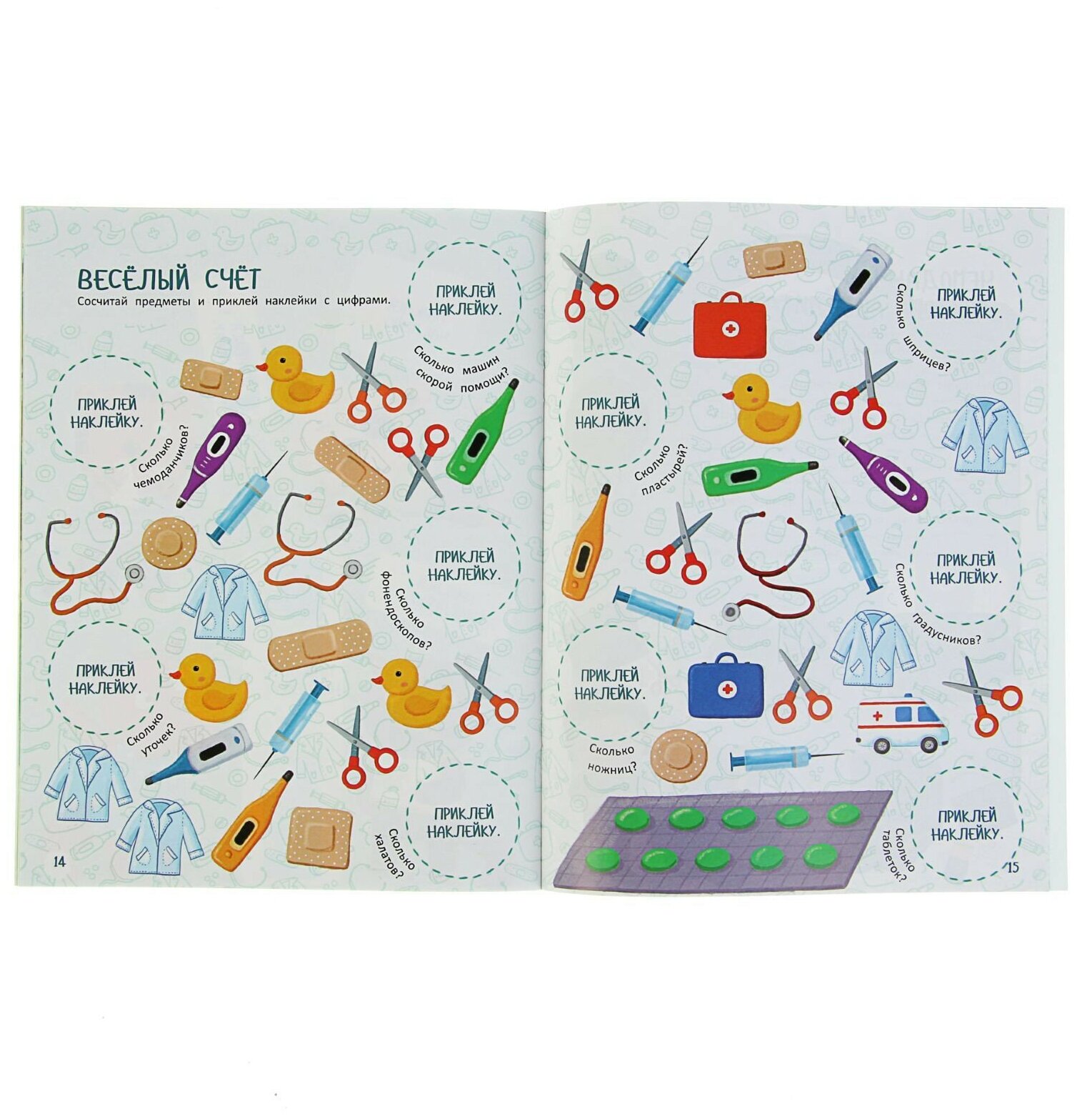 Серия "Игровая книжка малыша" порадует вас и ваших деток множеством ярких наклеек, игровых заданий, а также наличием поделок для творчества. Книга "Мой поход к врачу" научит ребёнка не бояться врачей и заботиться о своём здоровье. Смастерите чемоданчик доктора Айболита, склейте медицинский колпак и играйте в доктора!