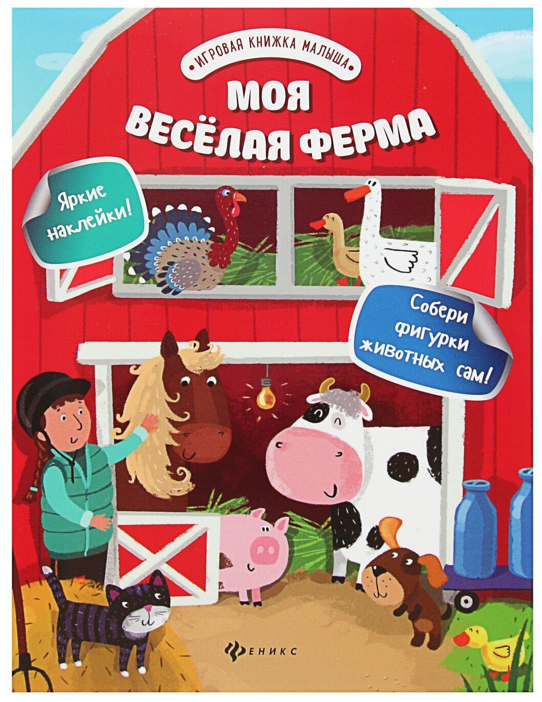 Серия "Игровая книжка малыша" порадует вас и ваших деток множеством ярких наклеек, игровых заданий, а также наличием поделок для творчества. Книга "Моя весёлая ферма" познакомит детишек с домашними животными, расскажет о том, какие у них домики, где чей малыш, и как заботятся о животных на ферме. Смастерите из бумаги коровку, лошадку, свинку, козочку, котика, собачку и играйте в весёлую ферму!