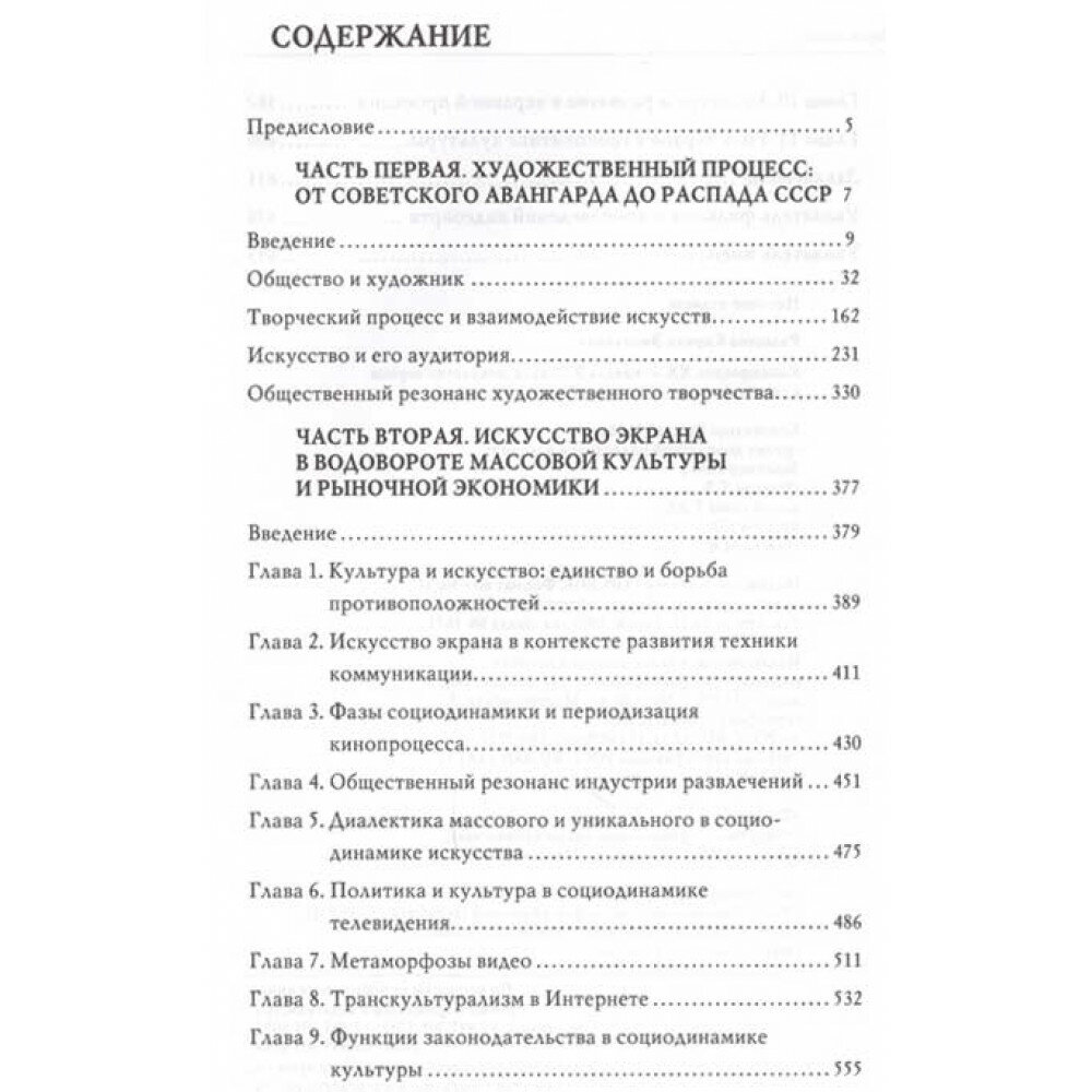 исследования технологий культуры и художественной жизни общества. Книга посвящена исследованию кинопроцесса в контексте его становления и развития на протяжении XX и XXI веков и включает описание и анализ художественного процесса в экранной проекции от советского авангарда до распада СССР и последовавших затем трансформаций искусства экрана в контексте массовой культуры и рыночной экономики.