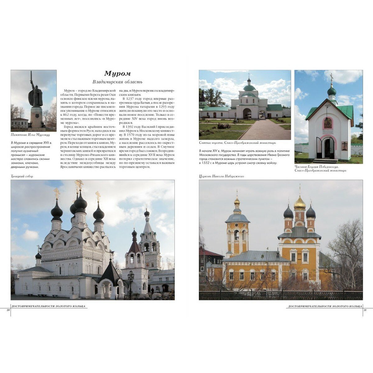 Предлагаемое издание содержит информацию о самых знаменитых достопримечательностях Золотого кольца России. Большое количество иллюстраций, дополненное интересными фактами, поможет читателю ближе познакомиться с самыми красивыми русскими церквями и монастырями, а также с известными городами Золотого кольца.