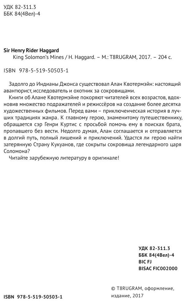 Книга: King Solomon's Mines (Хаггард Генри Райдер); Книга по Требованию, 2017
