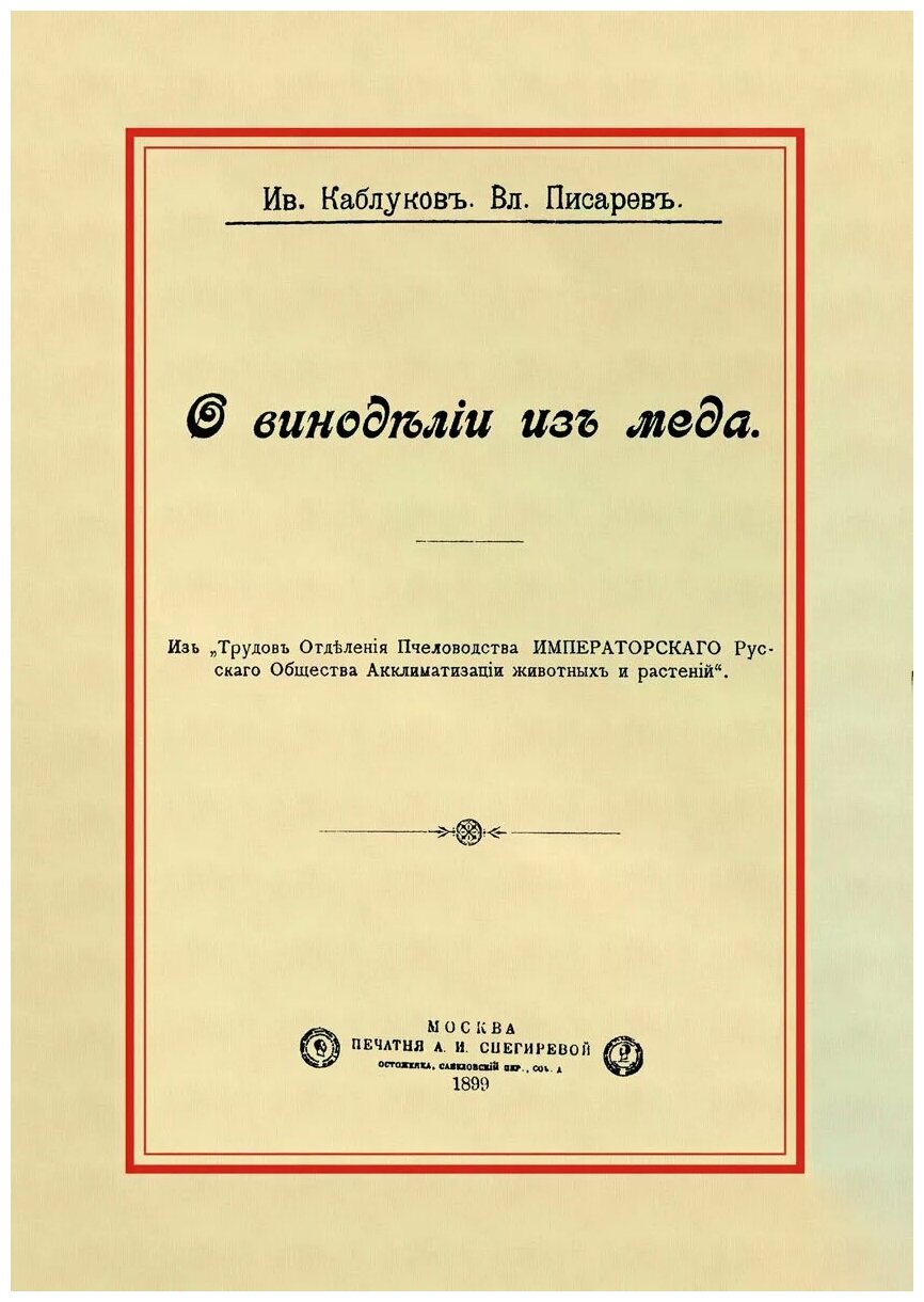 Книга: О виноделии из меда (Каблуковъ Ив., Писаревъ Вл.); Москва, 1899