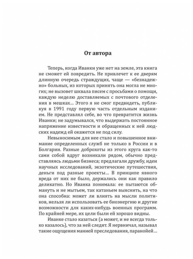 "Иванка. Ведать и исцелять" - правдивый и захватывающий рассказ писателя - "материалиста" об удивительных явлениях, с которыми ему пришлось столкнуться за годы жизни с Иванкой, известной болгарской целительницей. Рассказ о таинствах, дающих силы выжить в этом рассудочном мире.