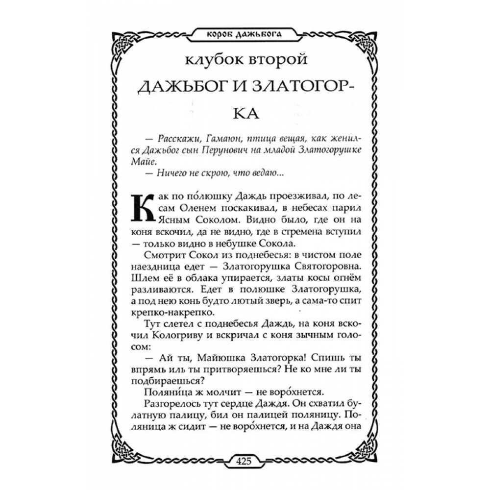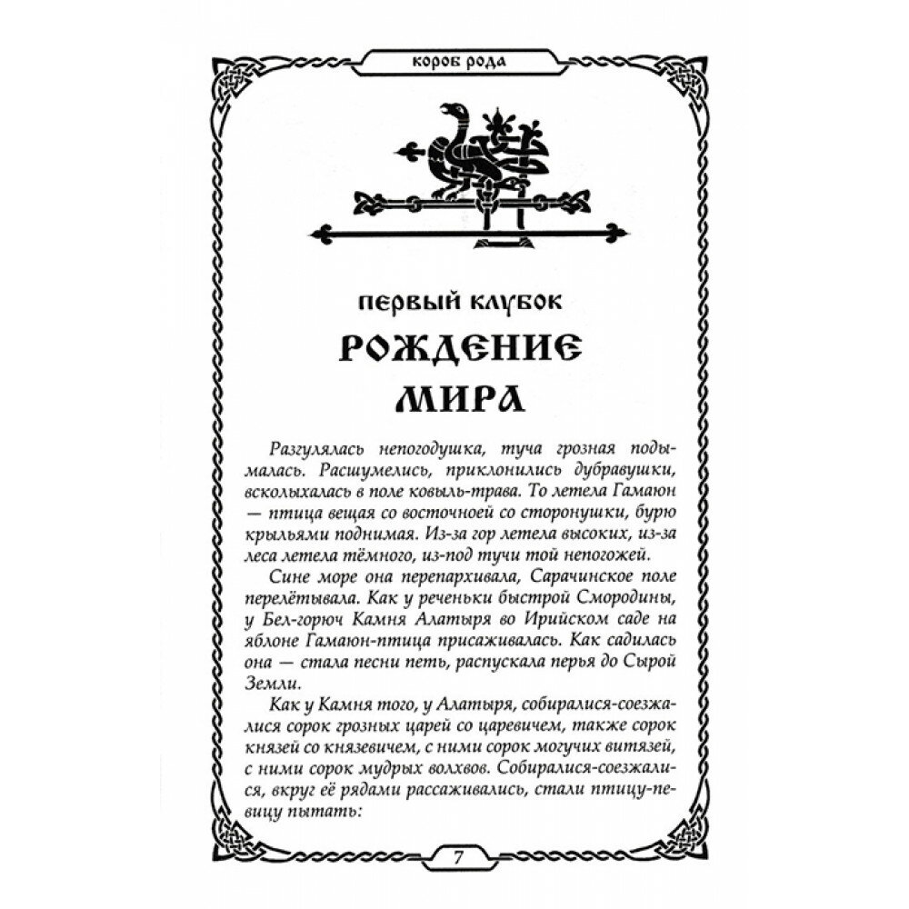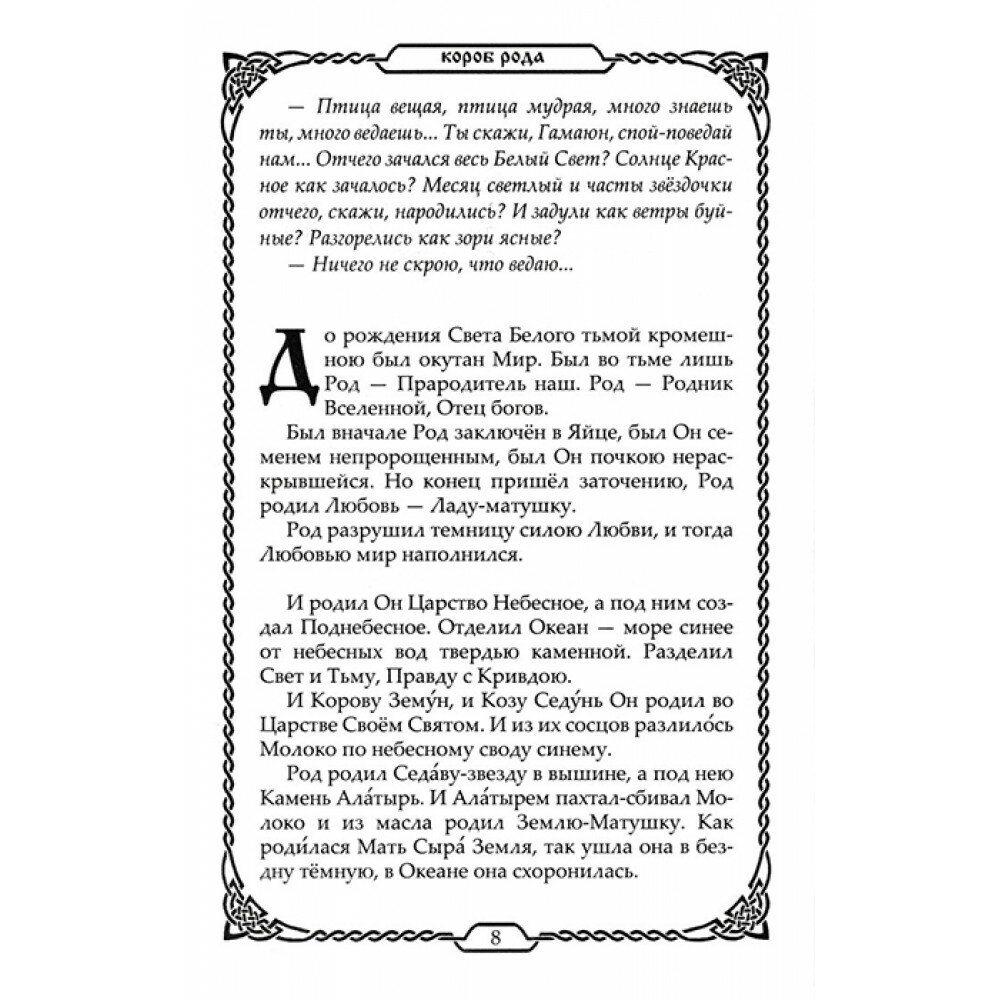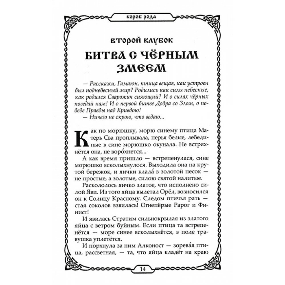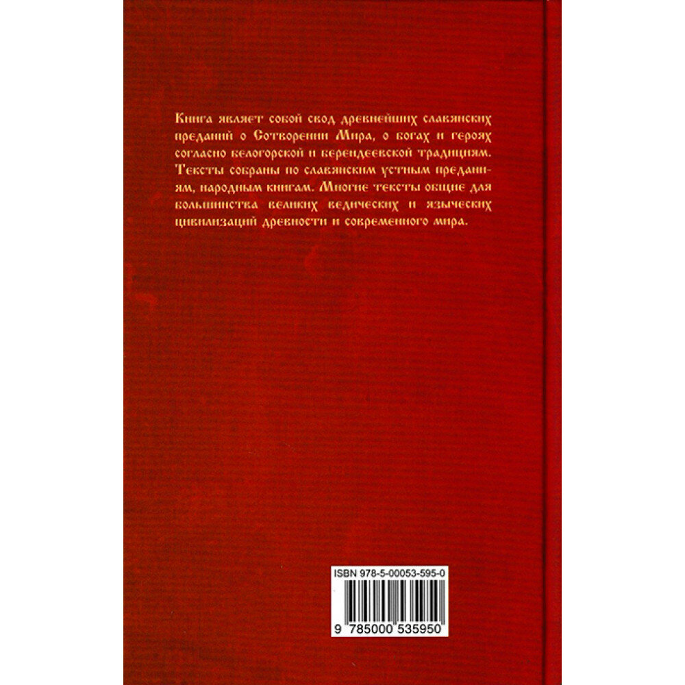 Книга являет собой свод древнейших славянских преданий о Сотворении Мира, о богах и героях согласно белогорской и берендеевской традициям. Тексты собраны по славянским устным преданиям, народным книгам. Многие тексты общие для большинства великих ведических и языческих цивилизаций древности и современного мира.