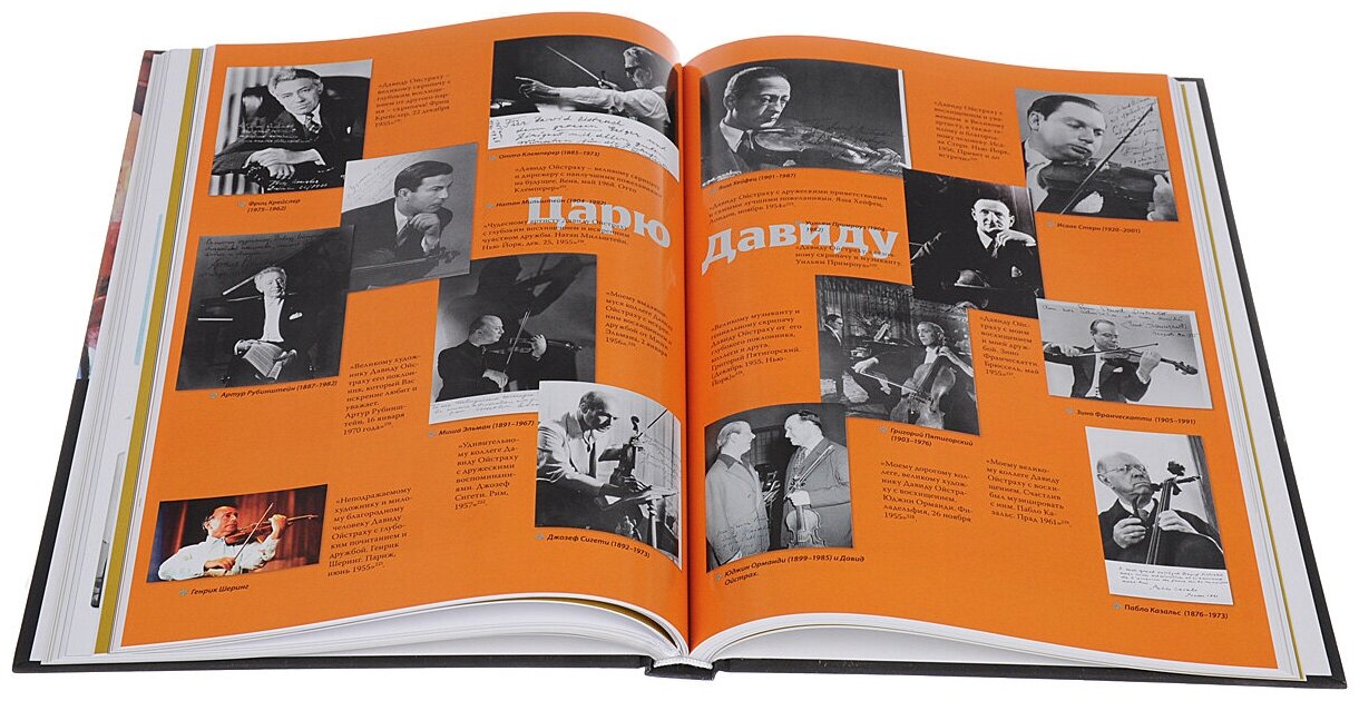 В издание вошли около 2 000 фотографий. Далеко не каждая отдельная фотография способна стать зеркалом внутреннего мира художника. Однако сумма фотографий, включенных в книгу-альбом " Царь-Давид", отображает все, что составляло сущность жизни Ойстраха - человека и музыканта: занятия на скрипке и изучение партитур, репетиции и концерты скрипача, ансамблиста и дирижера в крупнейших культурных центрах СССР и мира, работу с многочисленными учениками, общение с коллегами, друзьями, членами семьи. Фотографии комментируются фрагментами статей, писем и воспоминаний самого Давида Федоровича, высказываний о нем и его искусстве коллег-музыкантов, учеников, жены Тамары Ивановны Ойстрах и сына Игоря Давидовича Ойстраха. " Царь-Давид " - книга-альбом, изобразительный и текстовый ряды которого воссоздают путь музыканта в контексте его времени, жизни его страны, помогают проникнуть в его творческую лабораторию, психологический мир, понять его личность, характер, человеческие пристрастия.