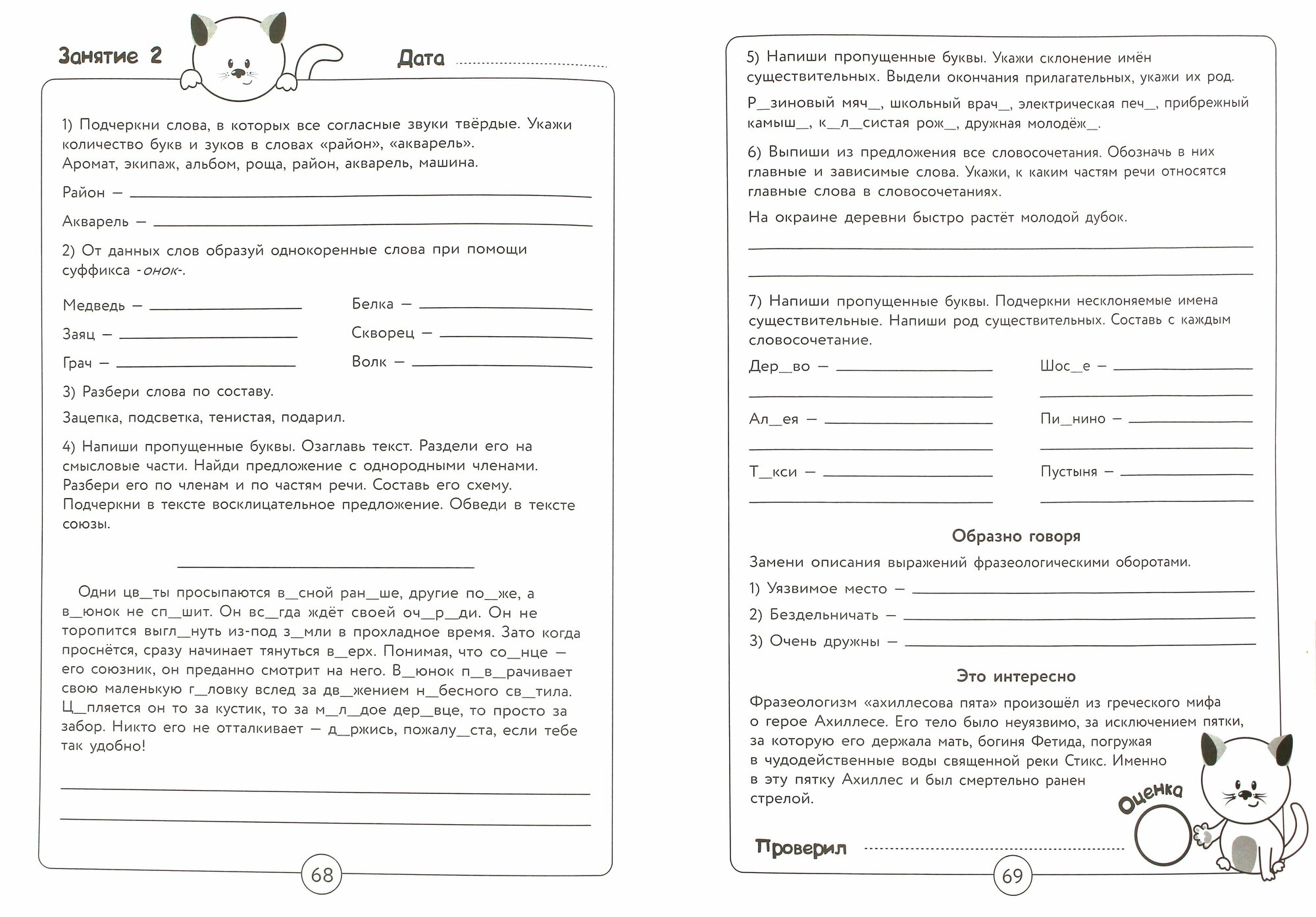 2й раздел - русский язык. Задания на пройденные орфограммы, всякие звуки-буквы (твердость-мягкость и т.д.), словарные слова. есть задания для развития речи( фразеология, загадки, пословицы, поговорки)