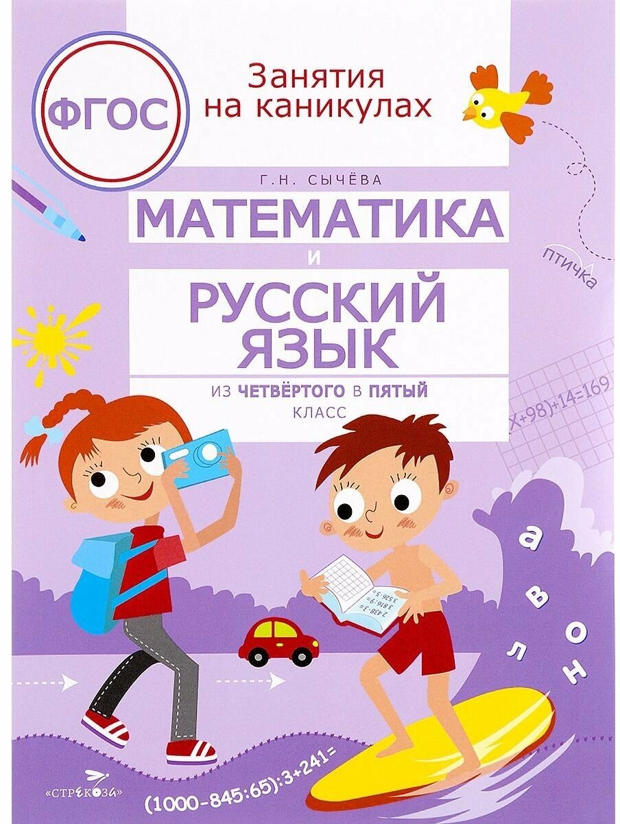 Математика и русский язык. Из четвертого в пятый класс. (Сычёва Галина Николаевна, Вовикова А. (иллюстратор), Сычева Галина Николаевна (соавтор), Ефремова Екатерина (иллюстратор)); Стрекоза, 2017