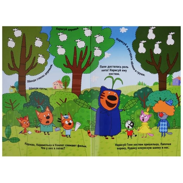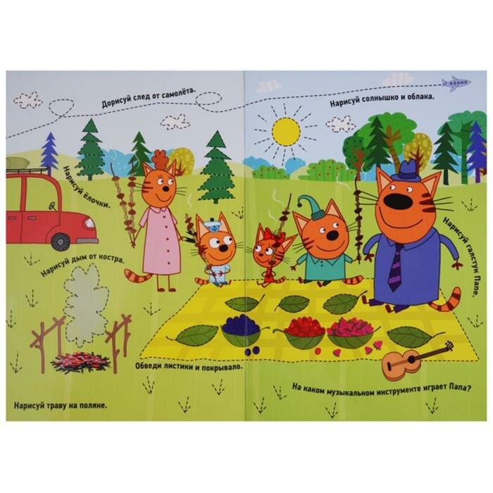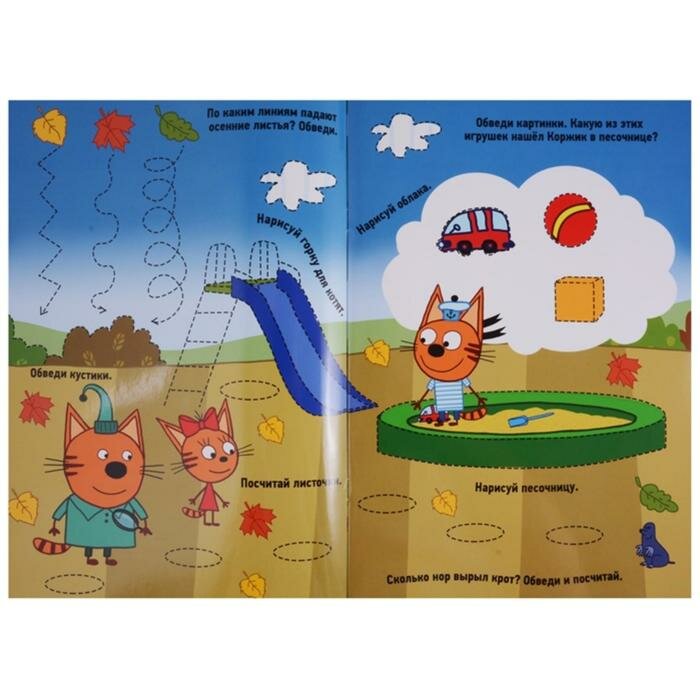 Странички ламинированные, поэтому на них нужно рисовать меловыми фломастерами/маркерами для магнитных досок/мольбертов. Можно хоть миллион раз рисовать и стирать, исправлять ошибки. Долгоиграющие прописи, можно потом по наследству передавать:) Но конечно даже меловой фломастеры (он сразу высыхает) стирается даже пальцем и если рисовать что-то справа, а потом слева, то ранее нарисованное рискует быть стертым. К некоторым подобным книжкам фломастер идёт в комплекте, правда книжка рублей на 80 дорожает автоматически. Здесь он в комплекте не предусмотрен к сожалению... Поклонники трех котов оценят :)