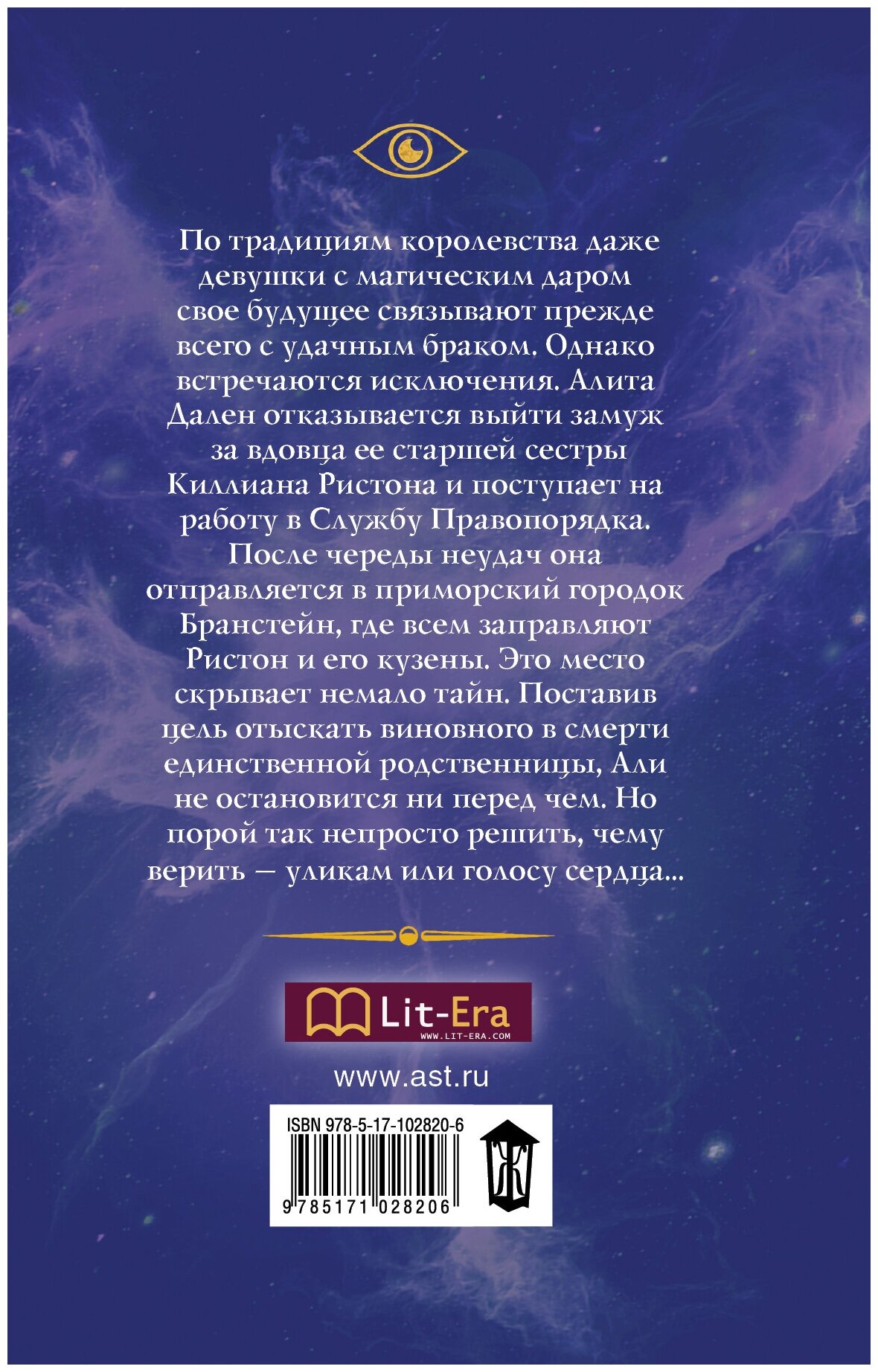 По традициям королевства даже девушки с магическим даром свое будущее связывают прежде всего с удачным браком. Однако встречаются исключения. Алита Дален отказывается выйти замуж за вдовца ее старшей сестры Киллиана Ристона и поступает на работу в Службу Правопорядка. После череды неудач она отправляется в приморский городок Бранстейн, где всем заправляют Ристон и его кузены. Это место скрывает немало тайн. Поставив цель отыскать виновного в смерти единственной родственницы, Али не остановится ни перед чем. Но порой так непросто решить, чему верить - уликам или голосу сердца…