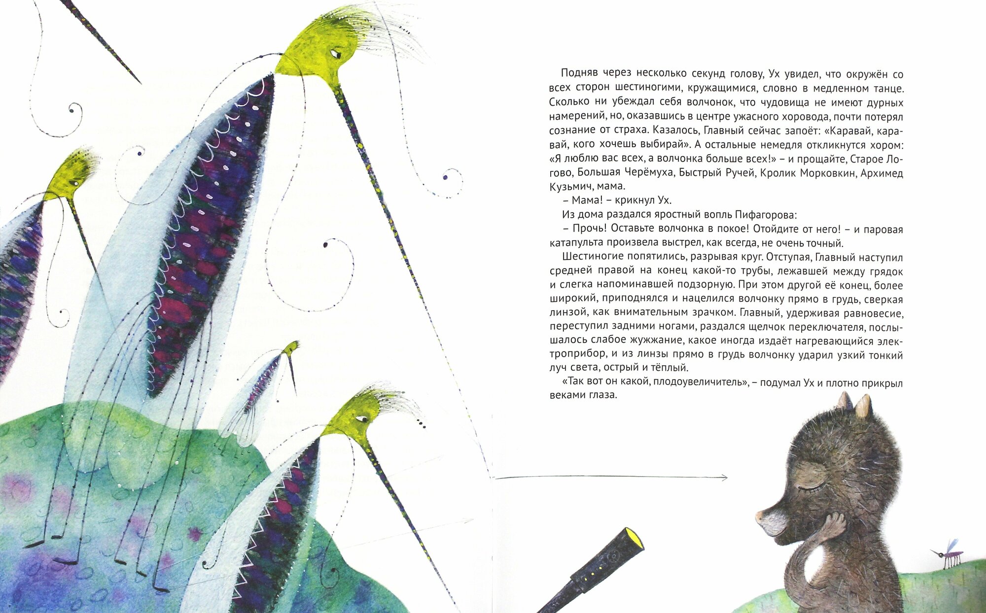 Герой этой книги - не Шерлок Холмс, а волчонок по имени Ух. Его верный помощник - не доктор Ватсон, а кролик Морковкин. А в остальном всё, как в настоящем детективе: открываются загадочные тайны, происходят таинственные события, дела, логические умозаключения, являются совершенно неожиданные разгадки. При этом и те, и другие, и третьи, и четвертые открываются, происходят, делаются и являются весело, иногда даже - смешно. Особенно для тех, у кого есть чувство юмора.