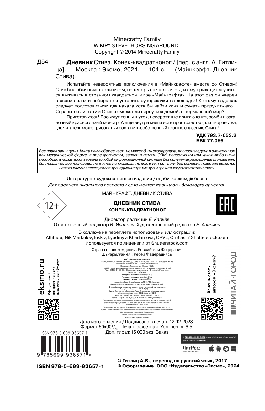 Дневник Стива. Конек-квадратноног (Minecraft Family); Эксмо, 2025