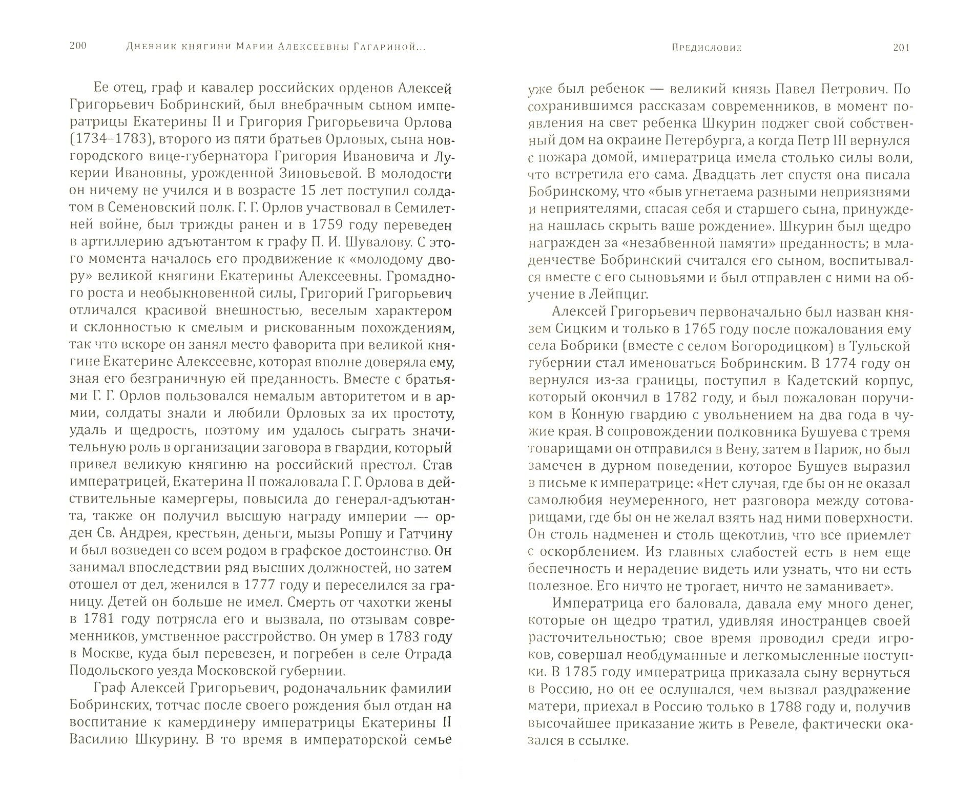 Кн. Мария Алексеевна Гагарина, урожд. графиня Бобринская, была внучкой императрицы Екатерины II (от Г. Орлова). В 1816 г. вышла замуж за кн. Н.С. Гагарина. Родила ему двух дочерей и двух сыновей, сама прожила недолго. От нее не осталось даже приличного портрета, но сохранились ее дневники с 1829 по 35 гг.