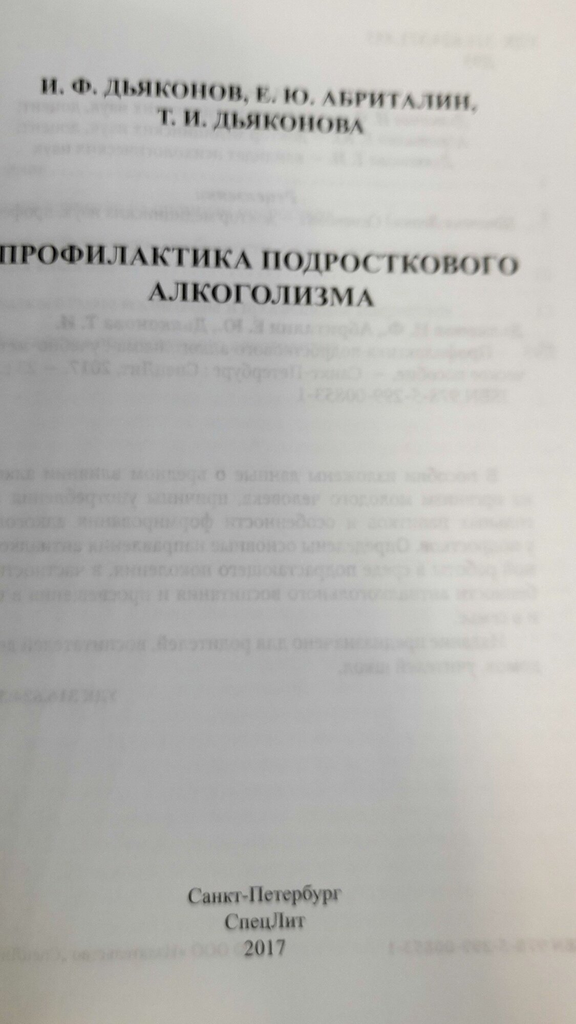 Профилактика подросткового алкоголизма (Игорь Дьяконов, Татьяна Дьяконова, Е.Ю. Абриталин); СпецЛит, 2017
