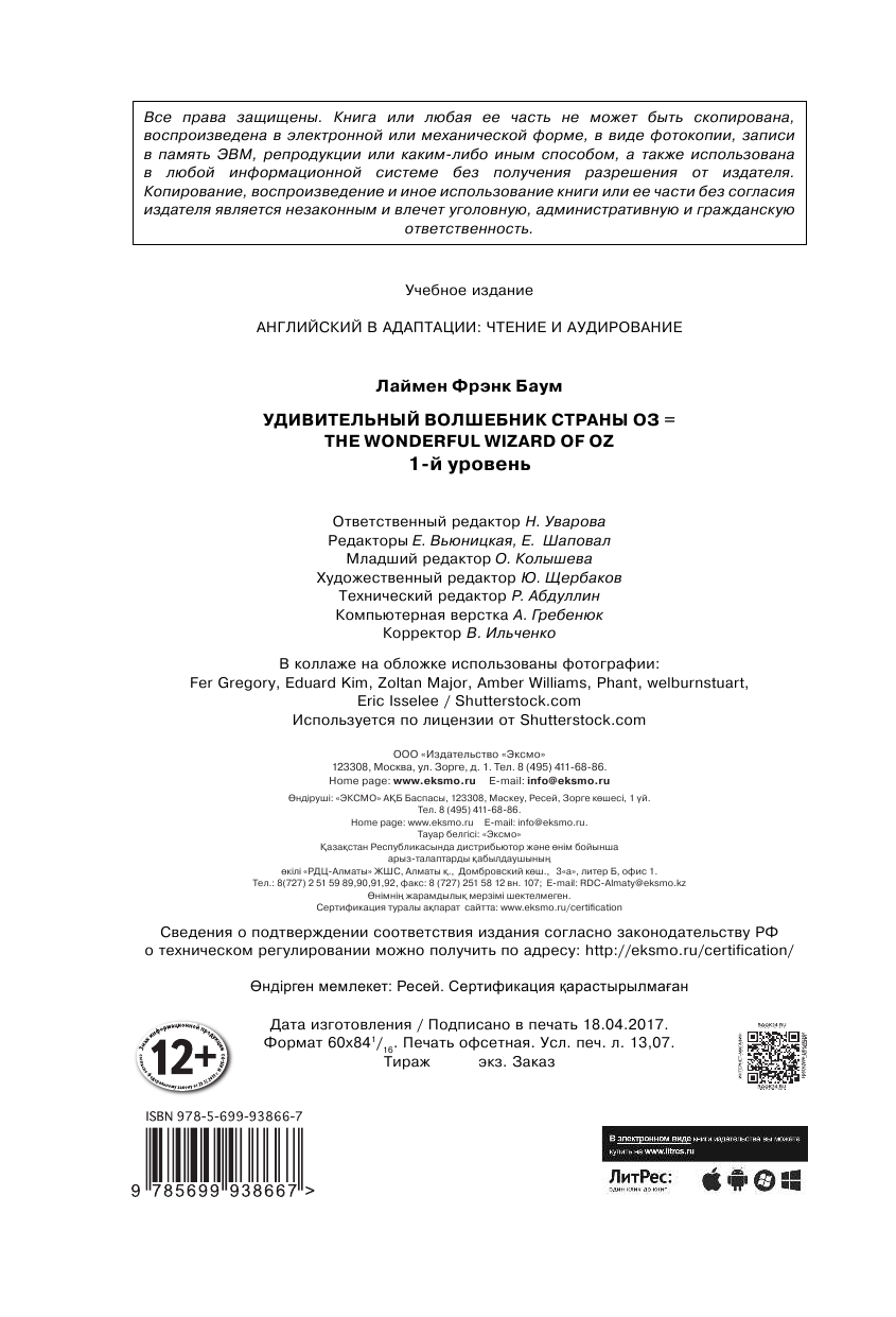 Удивительный волшебник Страны Оз. 1 уровень (+CD) (Баум Лаймен Фрэнк, Ильченко Валерия Витальевна (составитель), Баум Фрэнк Лаймен (соавтор)); Эксмо, 2017