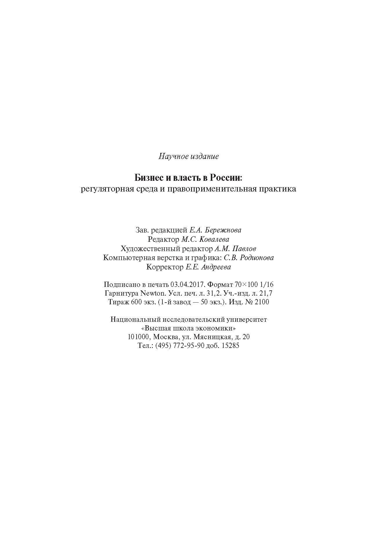Бизнес и власть в России. Регуляторная среда и правоприменительная практика (Коллектив авторов); Высшая Школа Экономики (ВШЭ), 2017