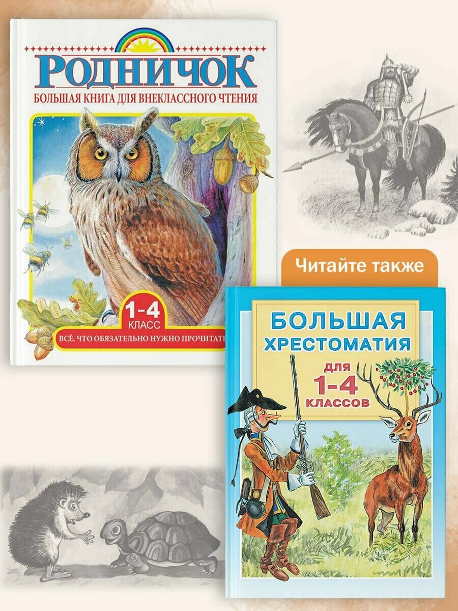 Впервые знаменитая серия "Родничок" для внеклассного чтения в начальной школе - в одной книге! Стихи, сказки, рассказы для учащихся 1- 4 классов собраны под одной обложкой. Классические и современные авторы, произведения, рекомендованные для чтения в школе, и многолетние традиции "Родничка" делают "Большую книгу для внеклассного чтения. 1- 4 класс" самым лучшим подарком юным учащимся!
