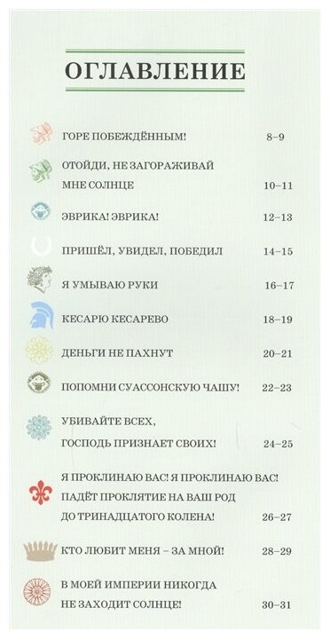 33 афоризма, начиная с 390 года до н.э. до конца XX века, вплетены в малюсенькие истории их появления. Но это еще не все: в конце книги еще больше 40 самых известных цитат!
