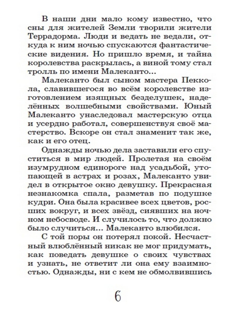 Тем более, что читать эту сказку совсем не страшно, а очень даже приятно и увлекательно. История очень хорошо продумана и на редкость тщательно выписана. В ней нет невнятностей, недоговорённостей, нестыковок, противоречий. Каждая фраза, каждое слово на своём месте - ни убавить, ни прибавить, ни местами поменять. А "сказки в сказке" - легенды Террадорма, рассказанные одним из центральных персонажей, - не только украшают повествование, но и помогают лучше понять происходящее.
