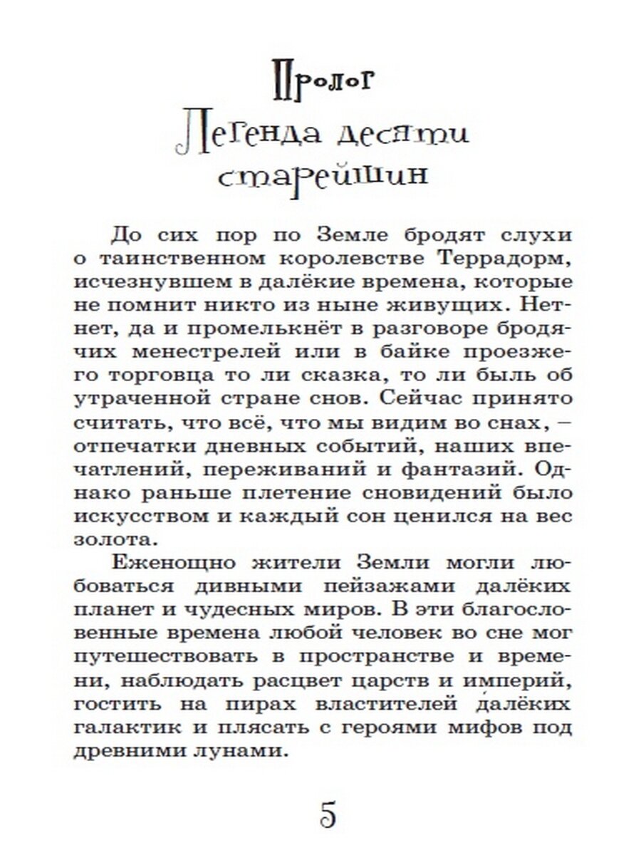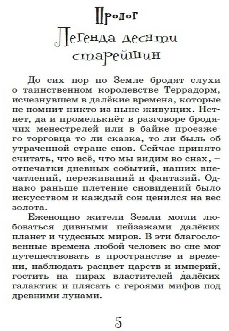 Эту книгу в идеале нужно читать зимой, в канун новогодних праздников. Вся история насквозь пропитана легким морозцем рождественского утра, скрипом саней и звоном колокольчиков и порцией таинственных, мрачных чудес в духе сказок Гауфа и Гофмана. С первых страниц мы погружаемся в прошлое королевства Террадорм – загадочного и удивительного места, в котором рождаются сны. На городских улицах возвышаются богатые дома и замки, гремят фейерверки и веселится толпа, но это лишь яркий, иллюзорный фасад, призванный скрыть весьма нелицеприятные дела. Человек, случайно попавший в эту страну, обречен на вечное рабство во сне у местных волшебников, и долговую кабалу никак не разорвать…
