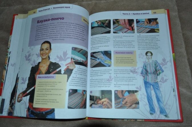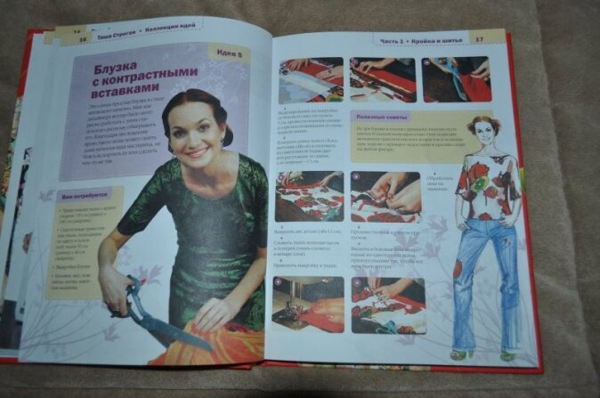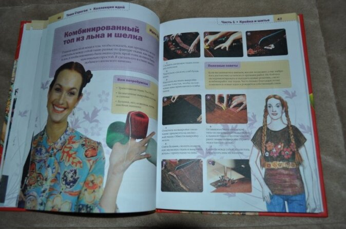 Мне книга не понравилась. Полистав, в магазине бы не купила. Оформлена-то она хорошо, и напечатана, и бумага неплохая.... а вот содержание..... Шить я чуть-чуть умею, но никаких идей не нашла. Описание процесса выполнения моделей мне показалось непонятным, выкройки - жалкие, и главное нет конечного фото полученной вещи, только рисунок-набросок того, что должно бы получиться. Зато фотографии автора огромные, на каждой странице отвлекают и раздражают... Считаю книгу бесполезной-ни дом украсить, ни гардероб пополнить....