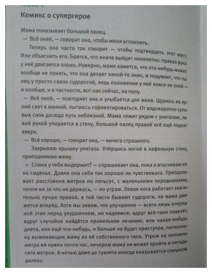 Первая книга произвела хорошее впечатление на всю семью, вторая часть вызвала неоднозначные эмоции... Надо отдать должное авторам, написано тонко, местами юморно, и поднимаются важные вопросы, но в целом - это очень грустно, местами так и просто страшно. Мама постепенно становится инвалидом, теряет способность двигаться. Папа замечен в компании посторонней особы. Суровая правда жизни, но при этом с какой-то светлой верой в чудо, в то, что всё будет хорошо... Так обычно, и так необычно. Однако, не уверена, что пометка 6+ соответствует действительности.