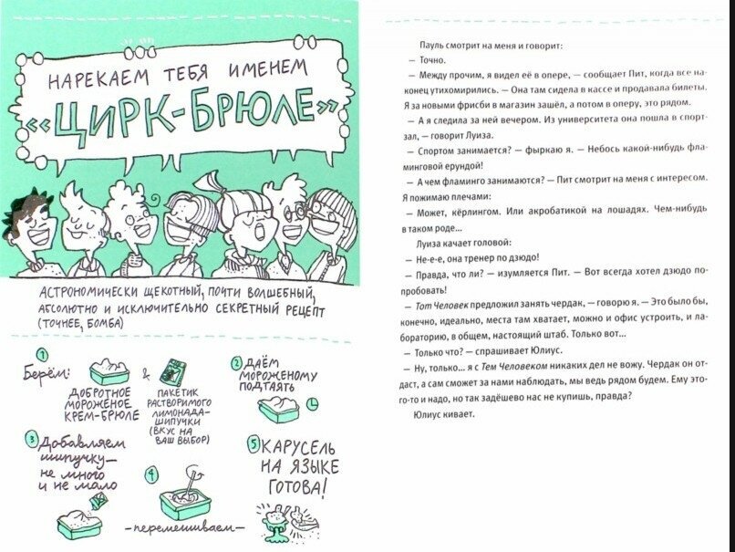 При этом само произведение мне нравится: что написано, как написано, как оформлено. Элементы комикса. Самостоятельные изобразительные элементы, такие вставки, без которых можно обойтись но и нельзя обойтись. Все эти вставки с рецептами, персонажами, со стрелочками и схемами - как я такое люблю!